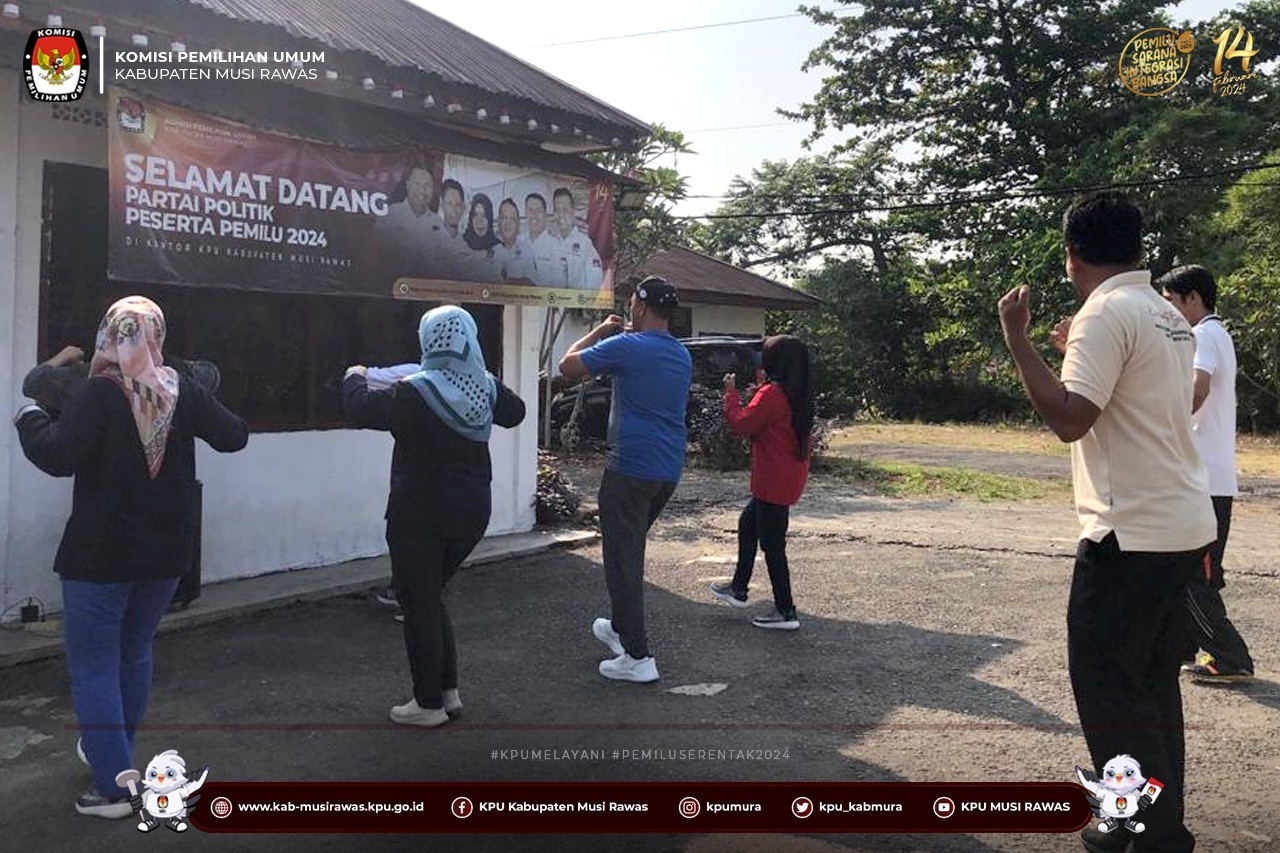 #TemanPemilih, KPU Kabupaten Musi Rawas melaksanakan kegiatan senam Pagi untuk menjaga kesehatan dan kebugaran tubuh di lingkungan Kantor KPU Kabupaten Musi Rawas (11/8/2023) ..