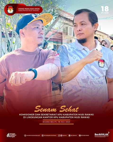 #TemanPemilih, Komisioner dan Sekretariat KPU Kabupaten Musi Rawas melaksanakan Senam Sehat bersama di lingkungan Kantor KPU Kabupaten Musi Rawas (18/7/2025) ..