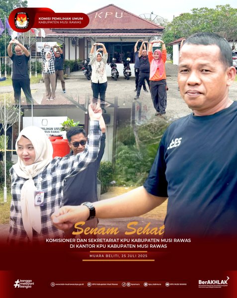 #TemanPemilih, Komisioner dan Sekretariat KPU Kabupaten Musi Rawas melaksanakan kegiatan Senam Sehat di Kantor KPU Kabupaten Musi Rawas (25/7/2025) ..
