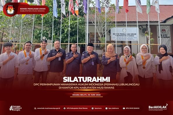 #TemanPemilih, KPU Kabupaten Musi Rawas menerima kunjungan dari DPC Perhimpunan Mahasiswa Hukum Indonesia (PERMAHI) Lubuklinggau di Kantor KPU Kabupaten Musi Rawas (10/6/2025) ..