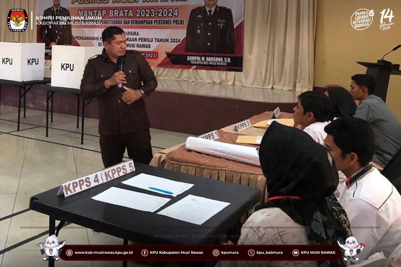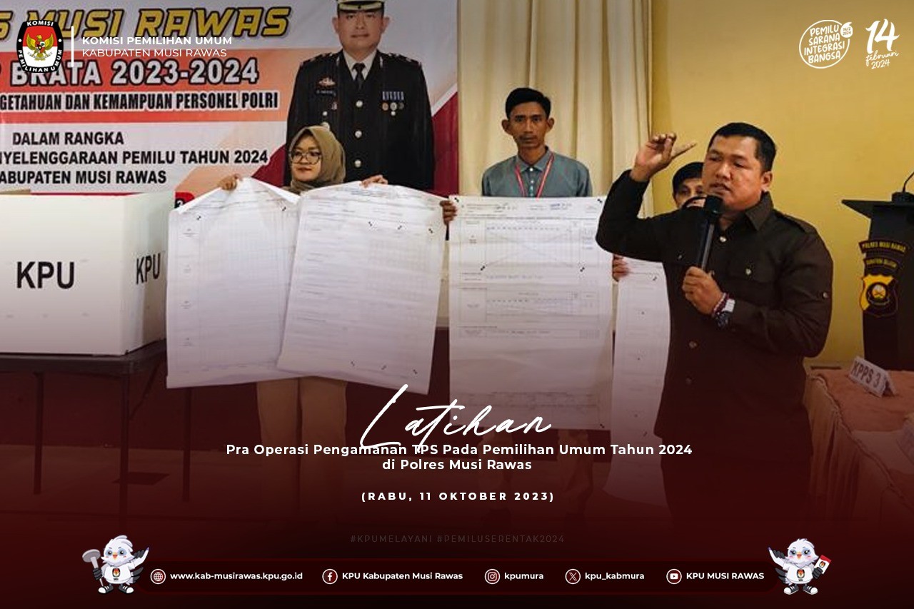 #TemanPemilih, KPU Kabupaten Musi Rawas mengikuti dan menjadi narasumber pada kegiatan Latihan Pra Operasi Pengamanan TPS Pada Pemilihan Umum Tahun 2024 yang berlangsung di Polres Musi Rawas (11/10/2023) ..