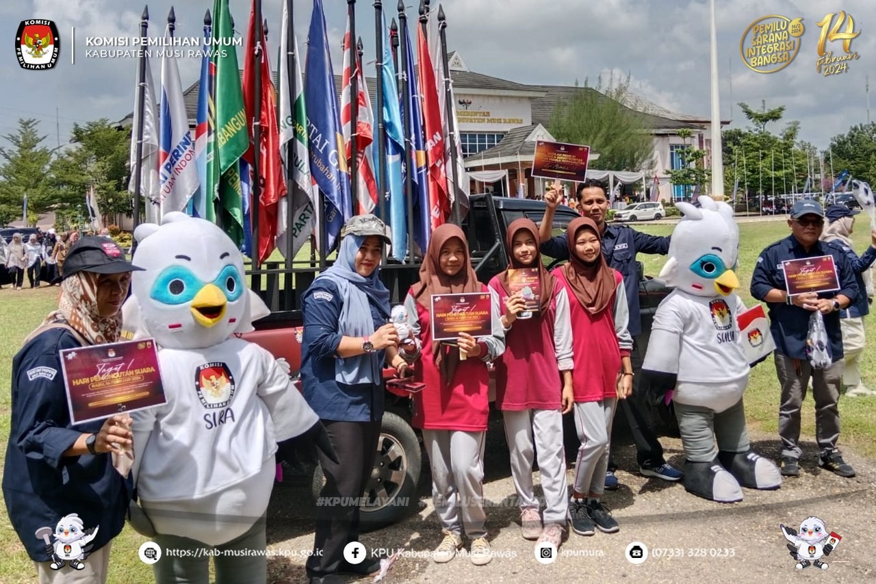 Sosialisasi dan Pendidikan Pemilih Tim Kirab Pemilu KPU Kabupaten Musi Rawas di Kecamatan Muara Beliti