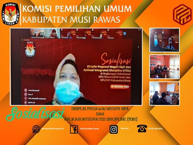 Pada Hari Selasa tanggal 12 Oktober 2021, Sekretaris Komisi Pemilihan Umum Kabupaten Musi Rawas, Bapak H. Nailul Azmi, S.Psi.,M.M. dan Sub Koordinator Bagian Hukum dan SDM Sekretariat Komisi Pemilihan Umum Kabupaten Musi Rawas, Bapak Andriansah, S.H. mengikuti kegiatan "Sosialisasi Disiplin Pegawai Negeri Sipil dan Aplikasi Integrated Discipline (I'Dis)" di lingkungan Sekretariat KPU Provinsi/KIP Aceh dan KPU/KIP Kabupaten/Kota secara daring.
