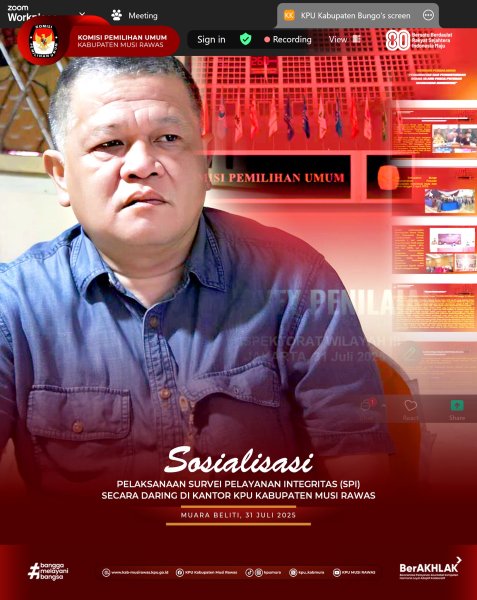 #TemanPemilih, KPU Kabupaten Musi Rawas mengikuti Sosialisasi Pelaksanaan Survei Pelayanan Integritas (SPI) Tahun 2025 secara daring di Kantor KPU Kabupaten Musi Rawas (31/7/2025) ..