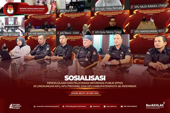 #TemanPemilih, KPU Kabupaten Musi Rawas mengikuti Sosialisasi Pengelolaan dan Pelayanan Informasi Publik (PPID) di lingkungan KPU, KPU Provinsi, dan KPU Kabupaten/Kota secara daring di Kantor KPU Kabupaten Musi Rawas (25/6/2025) ..