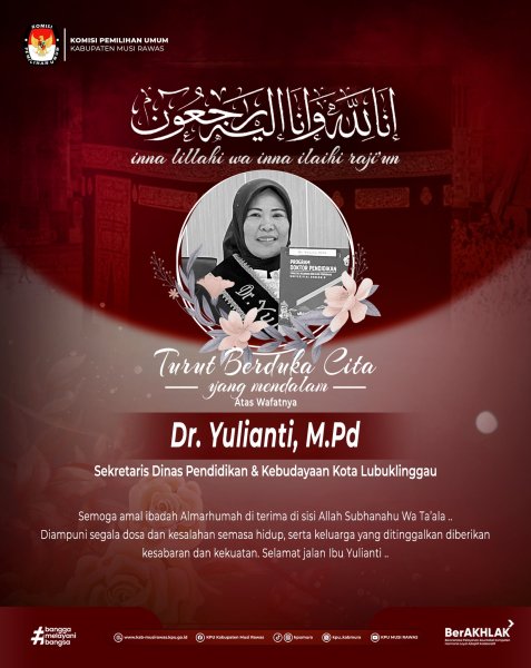 #TemanPemilih, segenap jajaran KPU Kabupaten Musi Rawas turut berduka cita atas berpulangnya Ibu Dr. Yulianti, M.Pd (Sekretaris Dinas Pendidikan dan Kebudayaan Kota Lubuklinggau) ..
