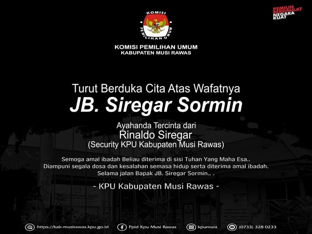 Turut berduka cita atas wafatnya JB. SIregar Sormin (Ayahanda Tercinta dari Rinaldo Siregar, Staf PPnPN KPU Kabupaten Musi Rawas)