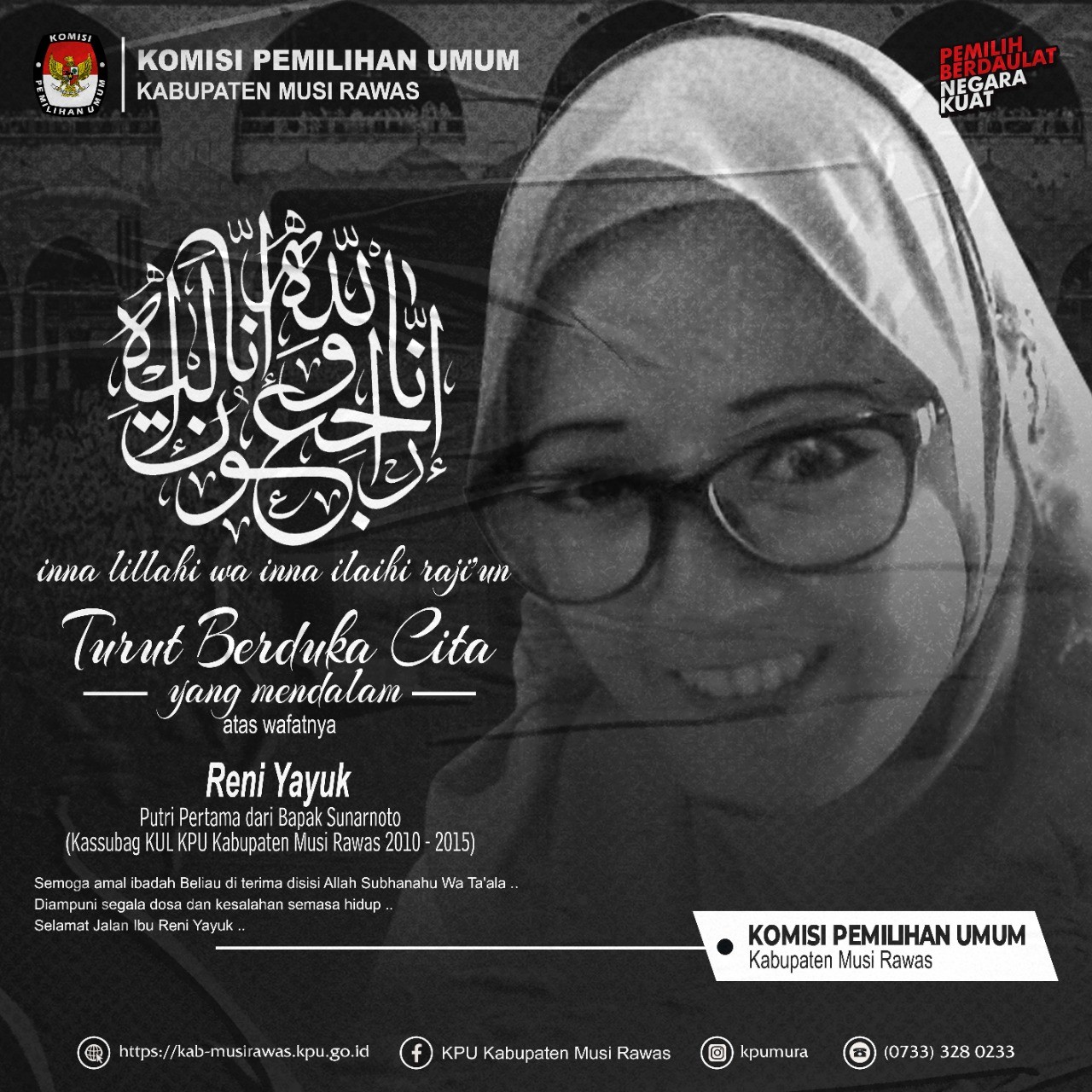Segenap keluarga besar KPU Kabupaten Musi Rawas mengucapkan turut berduka cita atas wafatnya Reni Yayuk (Putri Pertama dari Bapak Sunarnoto, Kasubbag KUL Kabupaten Musi Rawas periode 2010-2015). Semoga amal ibadah almarhumah diterima di sisi Allah SWT, dan keluarga yang ditinggalkan diberikan kekuatan dan ketabahan..