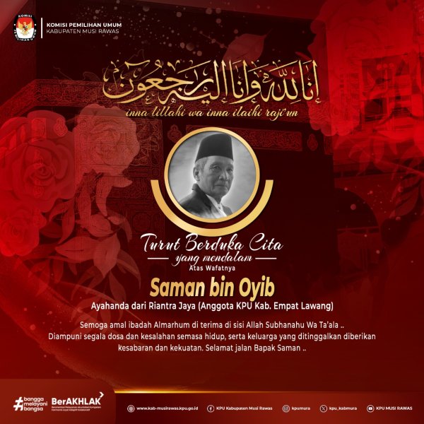 #TemanPemilih, segenap jajaran KPU Kabupaten Musi Rawas turut berduka cita atas berpulangnya Bapak Saman bin Oyib (Ayahanda dari Riantra Jaya - Anggota KPU Kab. Empat Lawang) ..