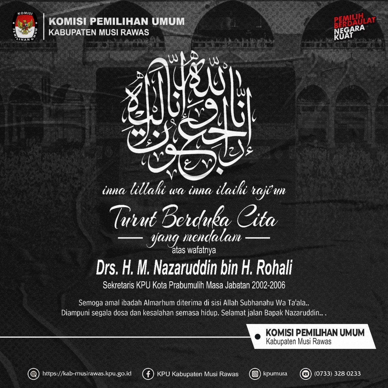 Turut Berdukacita atas Meninggalnya Bapak Drs. H. M. Nazaruddin bin H. Rohali (Sekretaris KPU Kota Prabumulih periode 2022-2006)