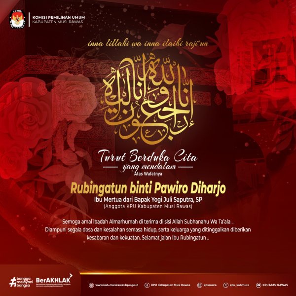 #TemanPemilih, segenap jajaran KPU Kabupaten Musi Rawas turut berduka cita atas berpulangnya Ibu Rubingatun binti Pawiro Diharjo (Ibu Mertua dari Bapak Yogi Juli Saputra, SP - Anggota KPU Kabupaten Musi Rawas) ..