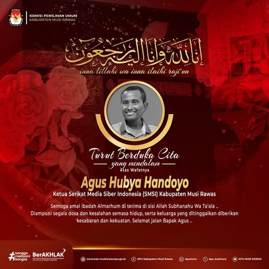 #TemanPemilih, segenap jajaran KPU Kabupaten Musi Rawas turut berduka cita atas berpulangnya Bapak Agus Hubya Handoyo (Ketua Serikat Media Siber Indonesia Kabupaten Musi Rawas) ..