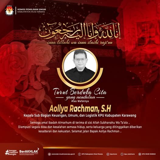 #TemanPemilih, segenap jajaran KPU Kabupaten Musi Rawas turut berduka cita atas berpulangnya Bapak Aollya Rachman, SH (Kasubbag Keuangan , Umum, dan Logistik KPU Kabupaten Karawang) ..