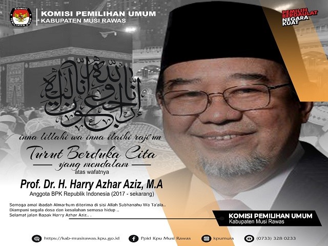 Segenap keluarga besar KPU Kabupaten Musi Rawas mengucapkan turut berdukacita atas wafatnya Bapak Prof. Dr. Harry Azhar Aziz, M.A.. Semoga amal ibadahnya diterima di sisi Allah Subhanahu Wa Ta'ala dan keluarga yang ditinggalkan diberikan kekuatan dan ketabahan.