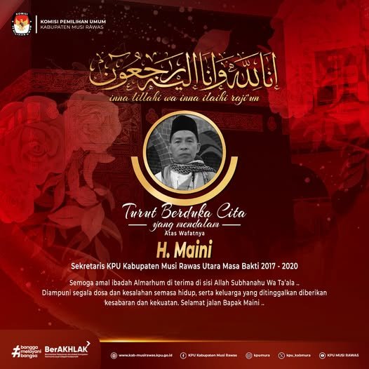 #TemanPemilih, segenap jajaran KPU Kabupaten Musi Rawas turut berduka cita atas berpulangnya Bapak H. Maini (Sekretaris KPU Kabupaten Musi Rawas Utara Masa Bakti 2017 - 2020) ..
