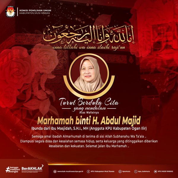 #TemanPemilih, segenap jajaran KPU Kabupaten Musi Rawas turut berduka cita atas berpulangnya Ibu Marhamah binti H. Abdul Majid (Ibunda dari Ibu Masjidah, S.H.I., MH - Anggota KPU Kabupaten Ogan Ilir) ..