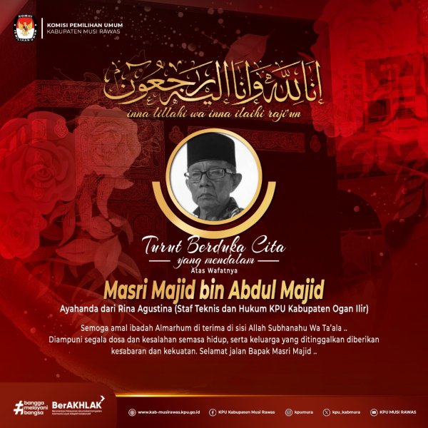 #TemanPemilih, segenap jajaran KPU Kabupaten Musi Rawas turut berduka cita atas berpulangnya Bapak Masri Majid bin Abdul Majid (Ayahanda Rina Agustina- Staf Teknis dan Hukum KPU Kabupaten Ogan Ilir) ..