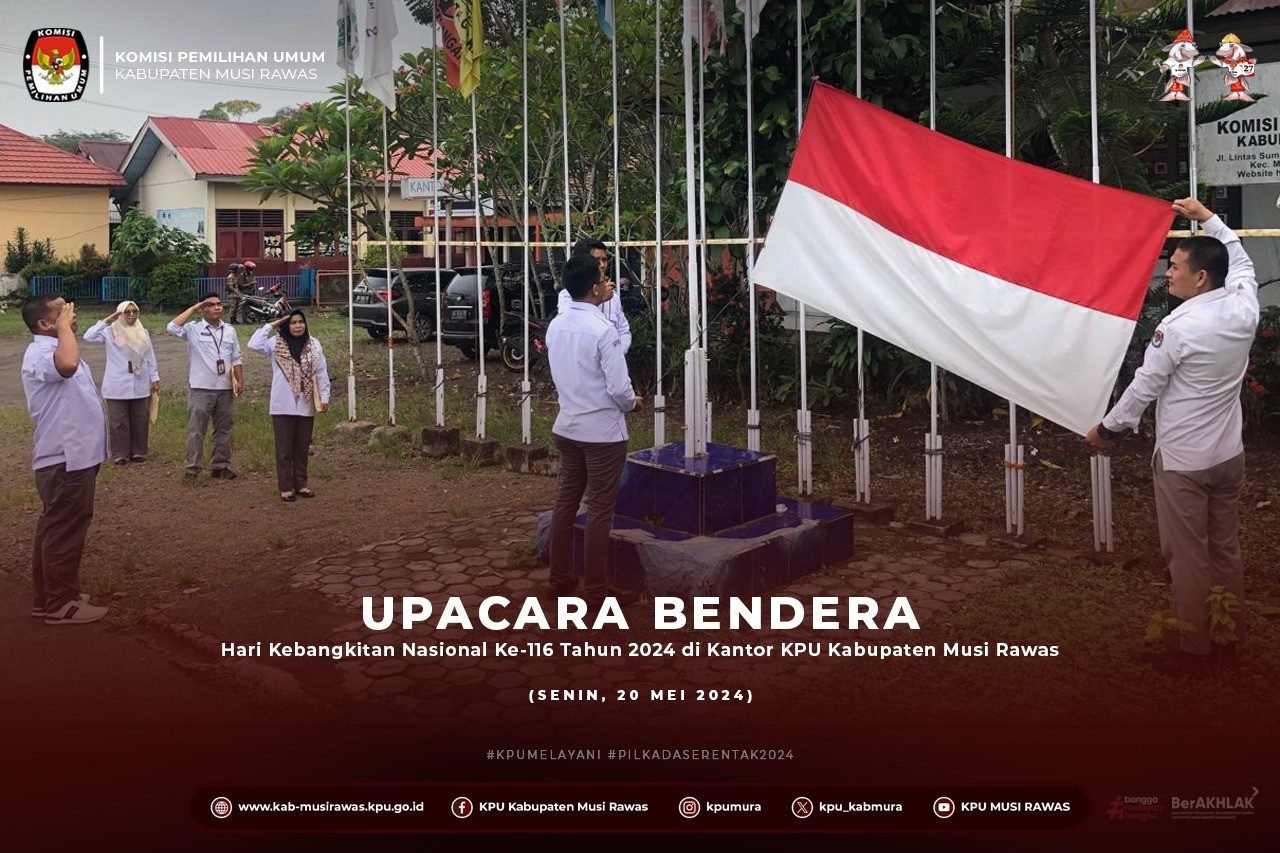 #TemanPemilih, KPU Kabupaten Musi Rawas melaksanakan Upacara Bendera Peringatan Hari Kebangkitan Nasional Ke-116 Tahun 2024 di Kantor KPU Kabupaten Musi Rawas (20/5/2024) ..