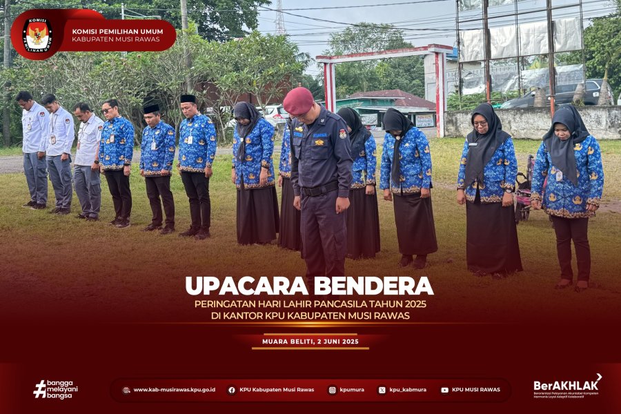 #TemanPemilih, Komisioner dan Sekretariat KPU Kabupaten Musi Rawas melaksanakan Upacara Bendera peringatan Hari Lahir Pancasila Tahun 2025 di Kantor KPU Kabupaten Musi Rawas (2/5/2025) ...