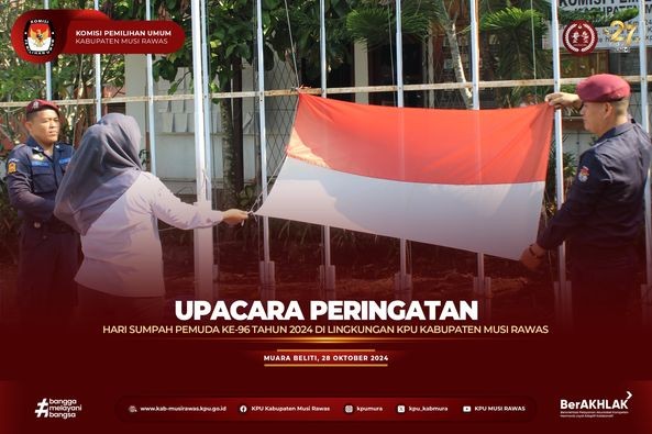 #TemanPemilih, KPU Kabupaten Musi Rawas Melaksanakan Upacara Bendera Peringatan Hari Sumpah Pemuda Ke-96 Tahun 2024 di Lingkungan Kantor KPU Kabupaten Musi Rawas (28/10/2024) .. ..