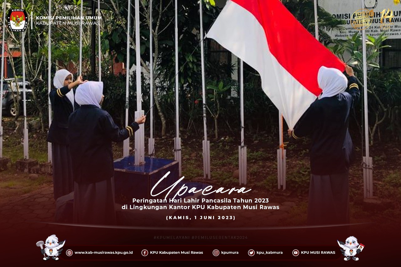 #TemanPemilih, KPU Kabupaten Musi Rawas melaksanakan Upacara Peringatan Hari Lahir Pancasila Tahun 2023 di Lingkungan Kantor KPU Kabupaten Musi Rawas (1/6/2023) ..