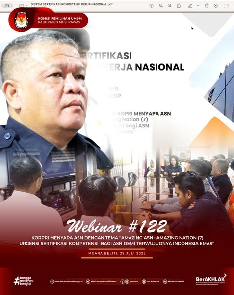 #TemanPemilih, Sekretariat KPU Kabupaten Musi Rawas mengikuti Webinar #122 KORPRI Menyapa ASN dengan tema "Amazing ASN, Amazing Nation (7) : Urgensi Sertifikasi Kompetensi bagi ASN demi Terwujudnya Indonesia Emas" secara daring di Kantor KPU Kabupaten Musi Rawas (29/7/2025) ..