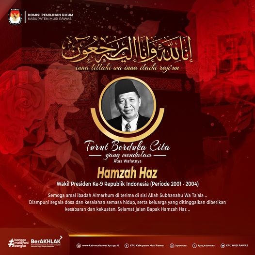 #TemanPemilih, segenap jajaran KPU Kabupaten Musi Rawas mengucapkan duka mendalam atas meninggalnya Bapak Hamzah Haz (Wakil Presiden Ke-9 Republik Indonesia, Periode 2001 - 2004) ..