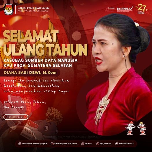 #TemanPemilih, segenap jajaran KPU Kabupaten Musi Rawas mengucapkan Selamat Ulang Tahun kepada Ibu Diana Sari Dewi, M.Kom (Kasubag SDM KPU Prov. Sumatera Selatan) ..