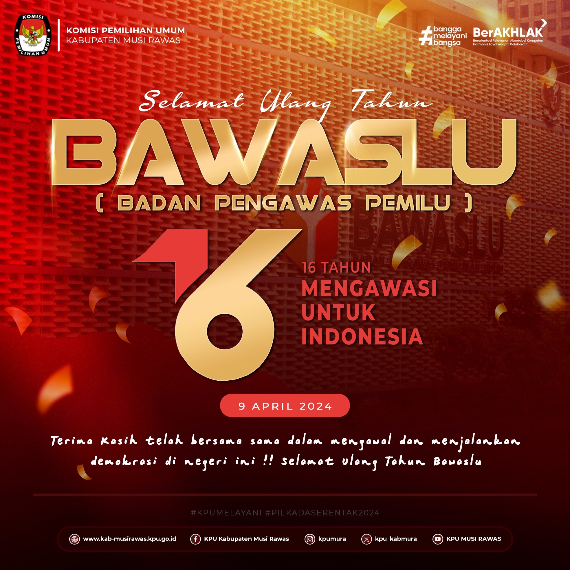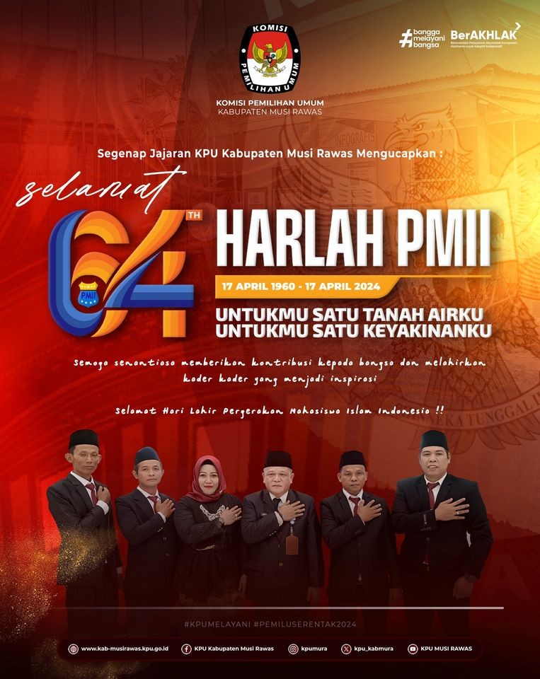 #TemanPemilih, segenap jajaran KPU Kabupaten Musi Rawas Mengucapkan Selamat Hari Lahir Pergerakan Mahasiswa Islam Indonesia (PMII) Ke-64 tahun ..