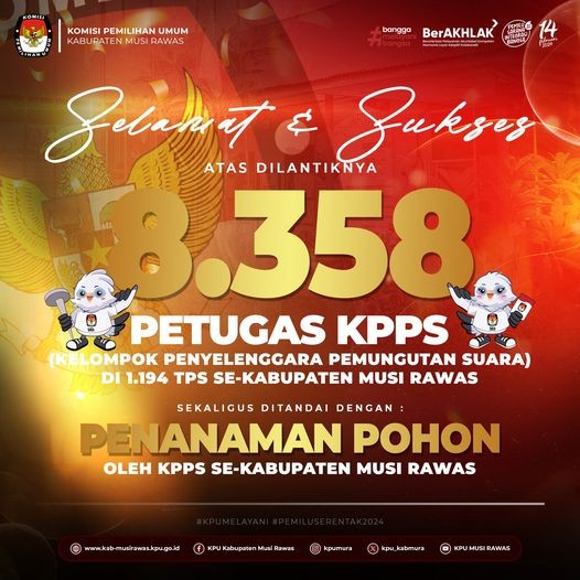#TemanPemilih, segenap jajaran KPU Kabupaten Musi Rawas mengucapkan Selamat atas dilantiknya Petugas Kelompok Penyelenggara Pemungutan Suara (KPPS) Se-Kabupaten Musi Rawas ..
