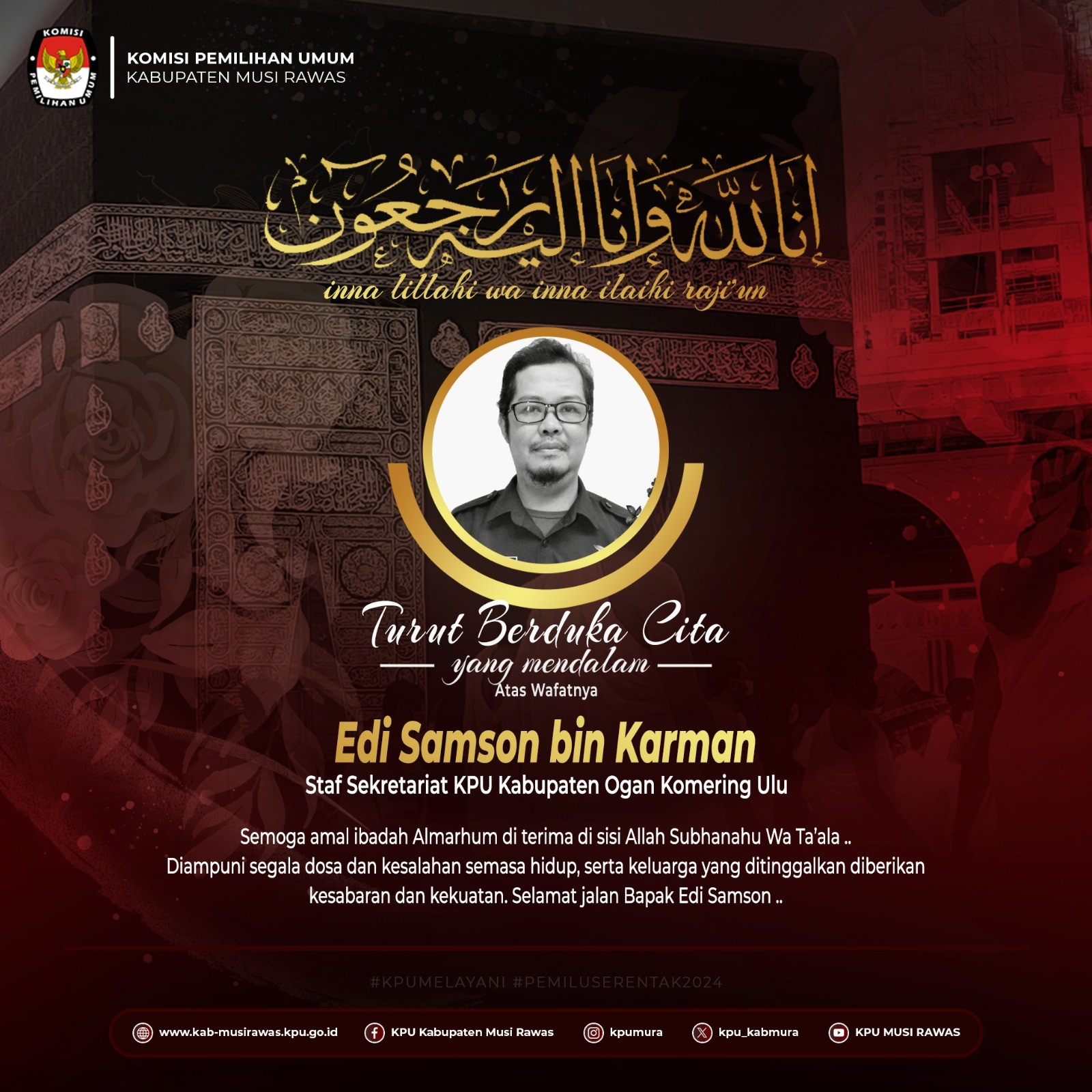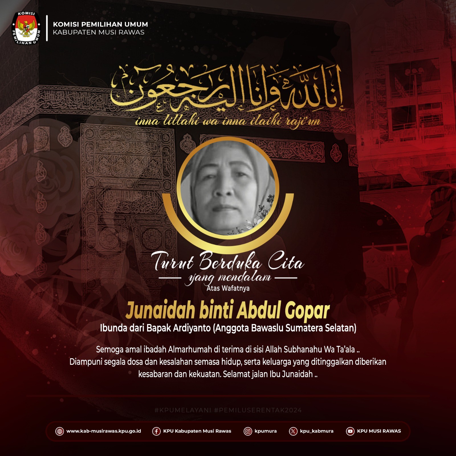 #TemanPemilih, segenap jajaran KPU Kabupaten Musi Rawas mengucapkan belasungkawa yang sebesar-besarnya atas meninggalnya Ibu Junaidah binti Abdul Gopar (Ibunda dari Bapak Ardiyanto - Anggota Bawaslu Provinsi Sumatera Selatan)