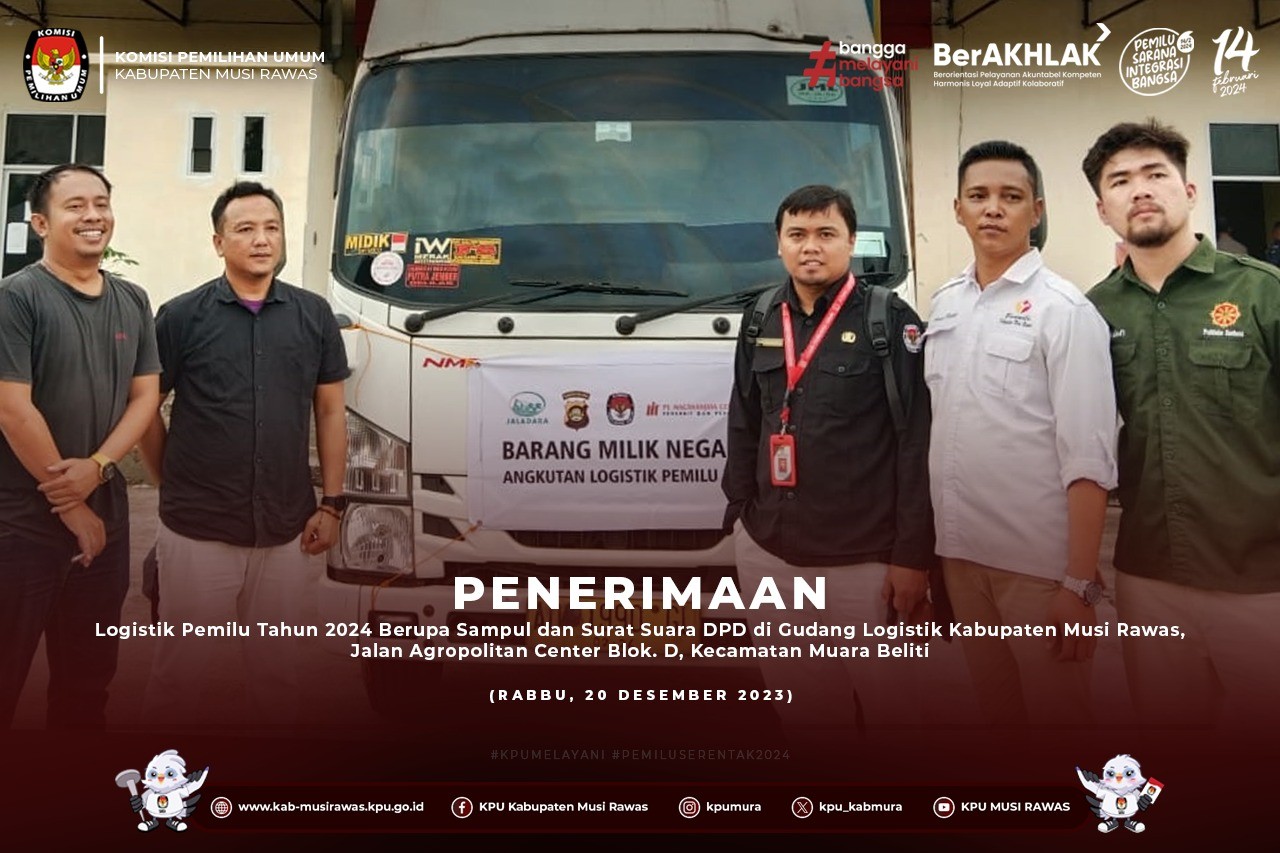 #TemanPemilih, KPU Kabupaten Musi Rawas Menerima Logistik Pemilu Tahun 2024 Berupa Sampul dan Surat Suara DPD di Gudang Logistik KPU Kabupaten Musi Rawas,Jalan Agropolitan Center Blok. D, Kecamatan Muara Beliti (20/12/2023) ..
