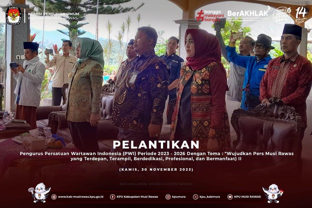 #TemanPemilih, KPU Kabupaten Musi Rawas menghadiri Pelantikan Pengurus Persatuan Wartawan Indonesia (PWI) Periode 2023 - 2026 Dengan Tema : "Wujudkan Pers Musi Rawas yang Terdepan, Terampil, Berdedikasi, Profesional, dan Bermanfaat) II (30/11/2023) ..