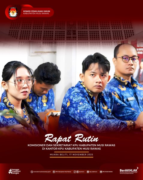 #TemanPemilih, KPU Kabupaten Musi Rawas mengikuti Sosialisasi Pelaksanaan dan Pertanggungjawaban Keuangan di lingkungan Sekretariat Jenderal KPU, KPU Provinsi, serta KPU Kabupaten/Kota secara daring (14/11/2025) ..