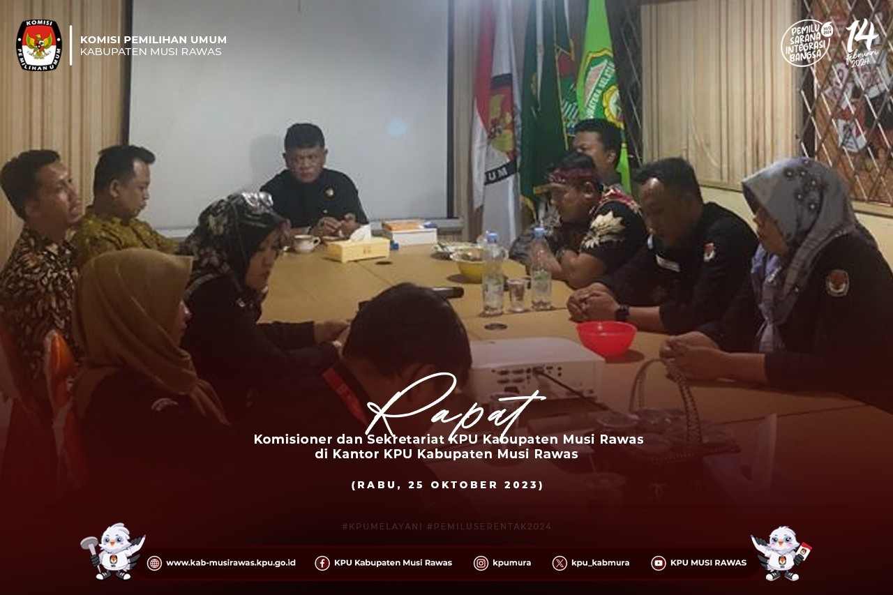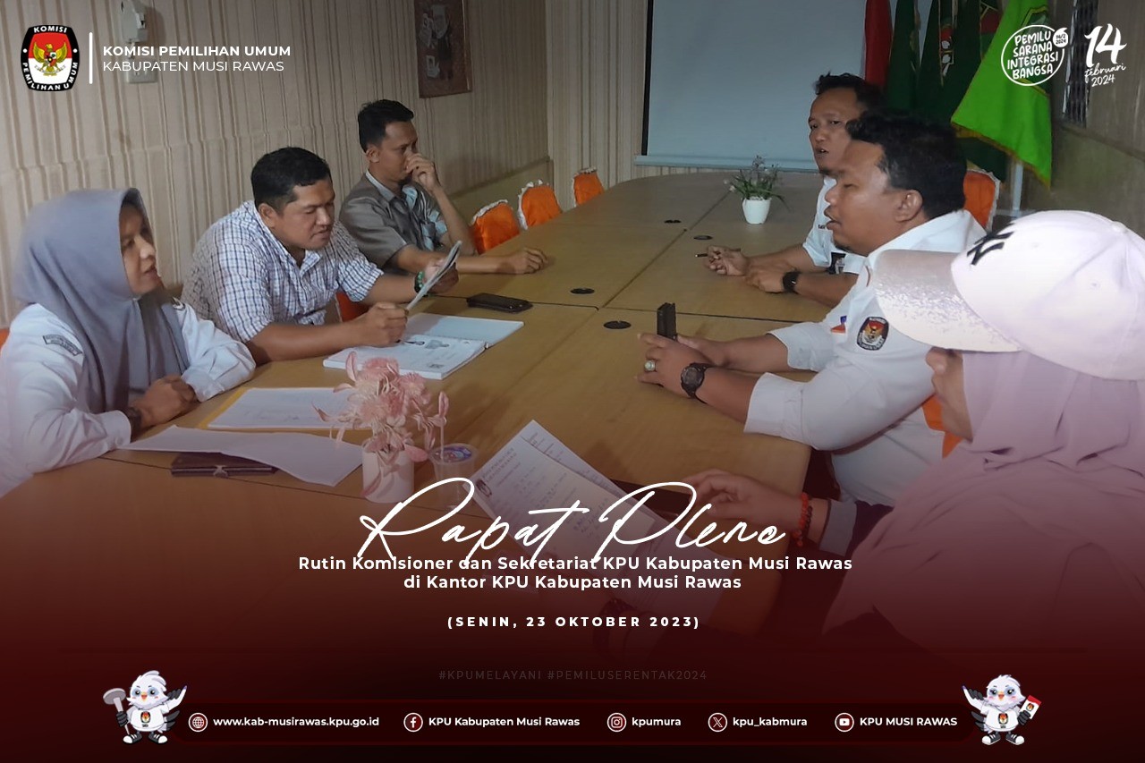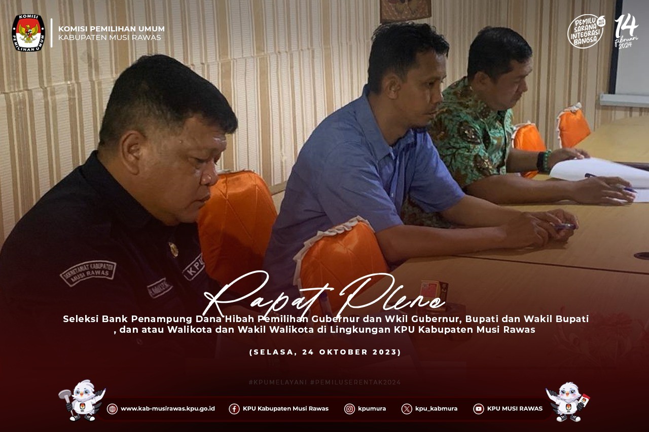 #TemanPemilih, KPU Kabupaten Musi Rawas melaksanakan Rapat Pleno Seleksi Bank Penampung Dana Hibah Pemilihan Gubernur dan Wkil Gubernur, Bupati dan Wakil Bupati, dan atau Walikota dan Wakil Walikota di Lingkungan KPU Kabupaten Musi Rawas (24/10/2023) ..