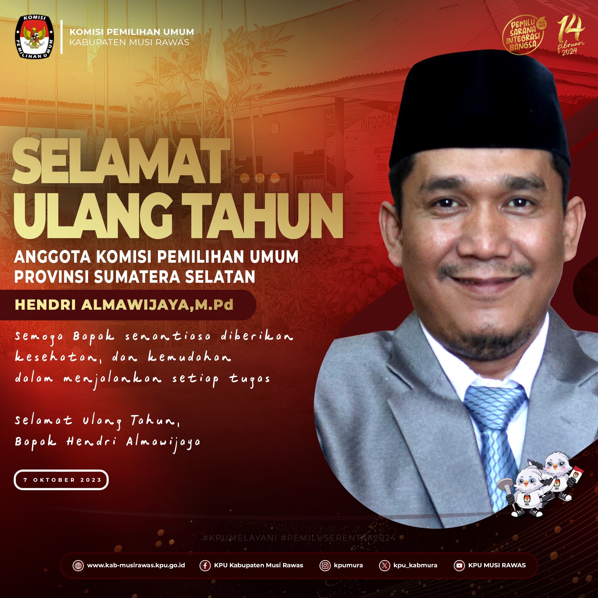 #TemanPemilih, segenap keluarga besar KPU Kabupaten Musi Rawas mengucapkan Selamat Ulang Tahun kepada Sekretaris Jenderal KPU Republik Indonesia, Bapak Drs. Bernad Dermawan Sutrisno, M.Si ...