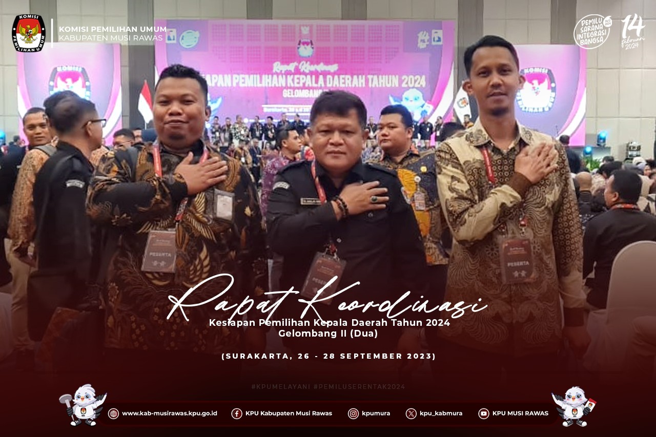 #TemanPemilih, KPU Kabupaten Musi Rawas mengikuti Rapat Koordinasi Kesiapan Pemilihan Kepala Daerah Tahun 2024 Gelombang II, yang berlangsung di Sukoharjo (26-28 September 2023) ..