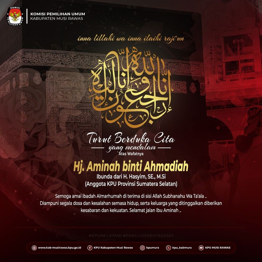 #TemanPemilih, segenap keluarga besar KPU Kabupaten Musi Rawas mengucapkan duka cita mendalam atas wafatnya Ibu Aminah binti Ahmadiah (Ibunda dari H. Hasyim, SE., M.Si - Anggota KPU Provinsi Sumatera Selatan).. .