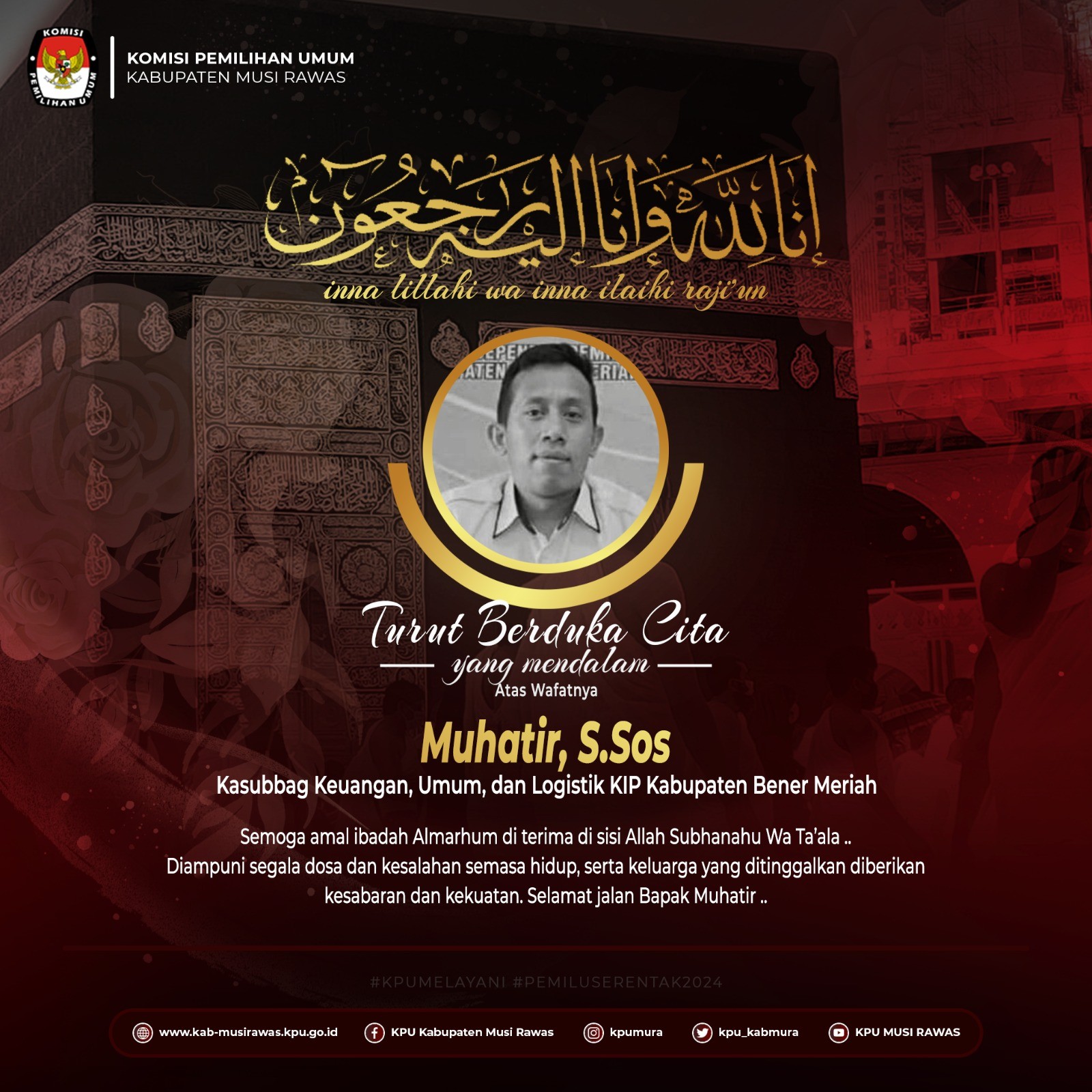 #TemanPemilih, segenap keluarga besar KPU Kabupaten Musi Rawas mengucapkan duka cita mendalam atas meninggalnya Bapak Muhatir, S.Sos (Kasubbag Keuangan, Umum, dan Logistik KIP Bener Meriah).. .