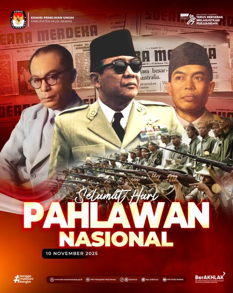 KPU Kabupaten Musi Rawas memperingati Hari Pahlawan 10 November 2025 dengan semangat untuk terus bergerak dan melanjutkan perjuangan membangun demokrasi yang bermartabat.