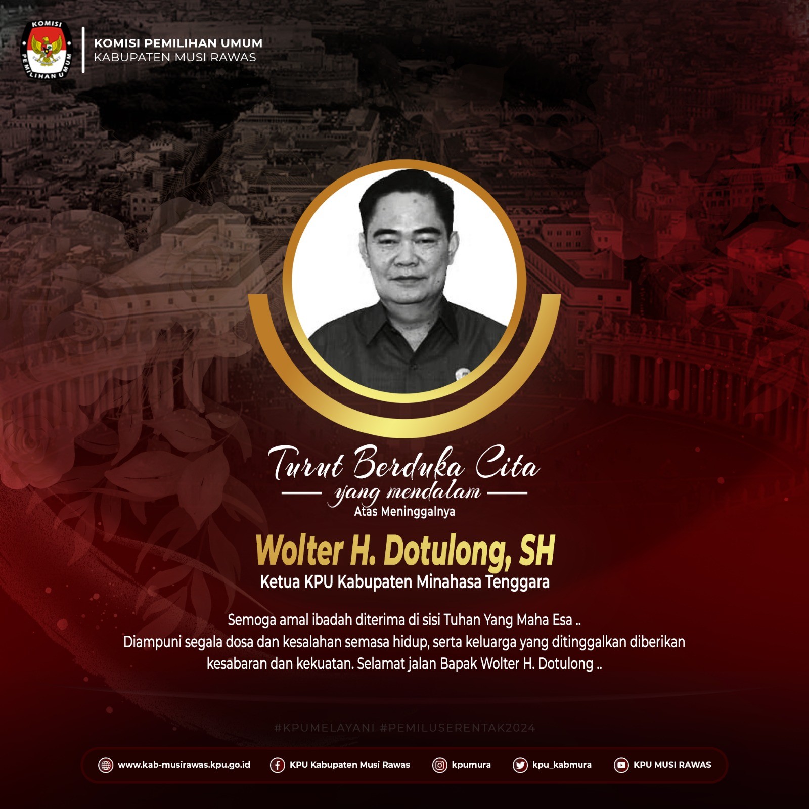 #TemanPemilih, segenap jajaran KPU Kabupaten Musi Rawas turut berduka cita yang mendalam atas meninggalnya Bapak Wolter H. Dotulong, SH (Ketua KPU Kabupaten Minahasa Tenggara) ..