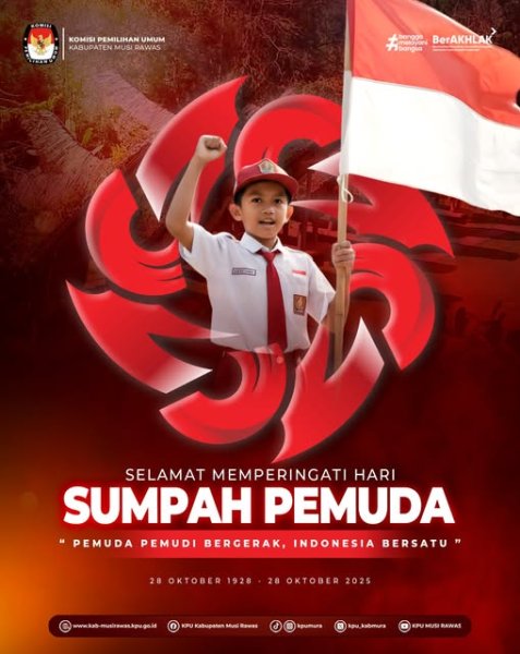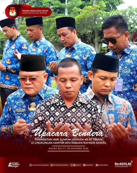 KPU Kabupaten Musi Rawas melaksanakan Upacara Peringatan Hari Sumpah Pemuda ke-97 dengan khidmat di halaman kantor KPU Kabupaten Musi Rawas (28/10/2025).