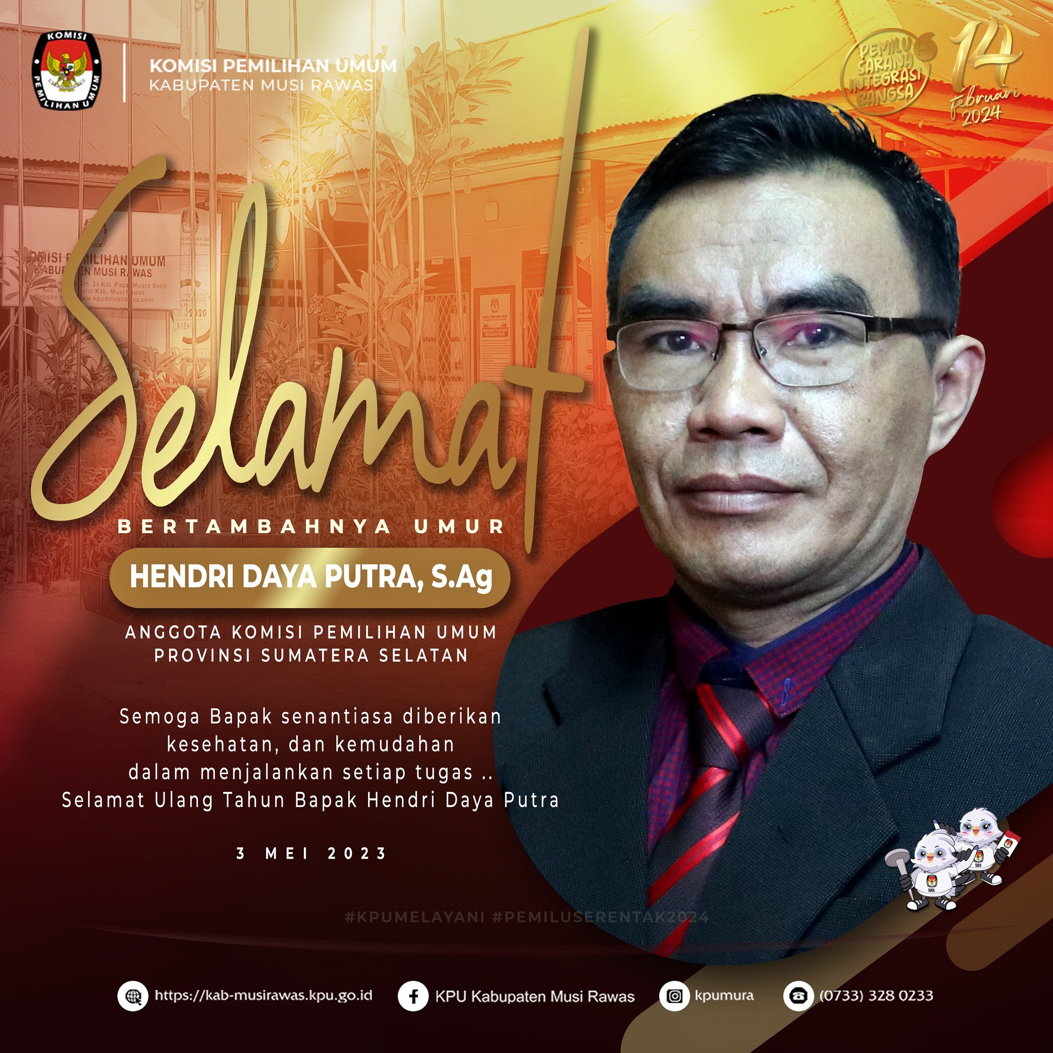 #TemanPemilih, segenap keluarga besar KPU Kabupaten Musi Rawas mengucapkan selamat memasuki masa purnabakti kepada Kabag Hukum dan SDM KPU Provinsi Sumatera Selatan, Bapak Abdullah, S.H,M.A