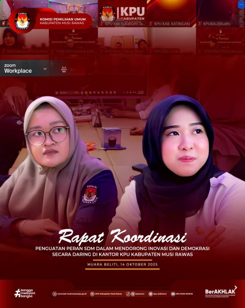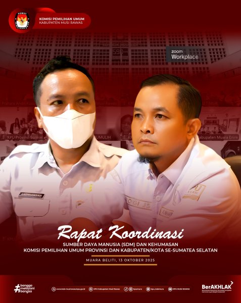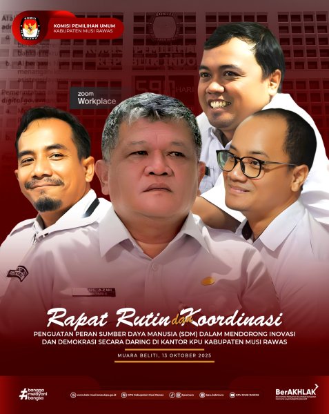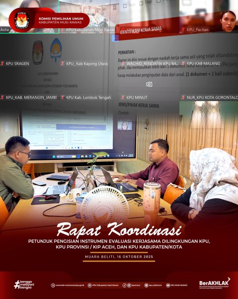 #TemanPemilih, KPU Kabupaten Musi Rawas mengikuti Rapat Petunjuk Pengisian Instrumen Evaluasi Kerja Sama di Lingkungan KPU, KPU Provinsi/KIP Aceh, dan KPU/KIP Kabupaten/Kota yang dilakukan secara daring melalui Zoom Meeting (16/10/2025)..