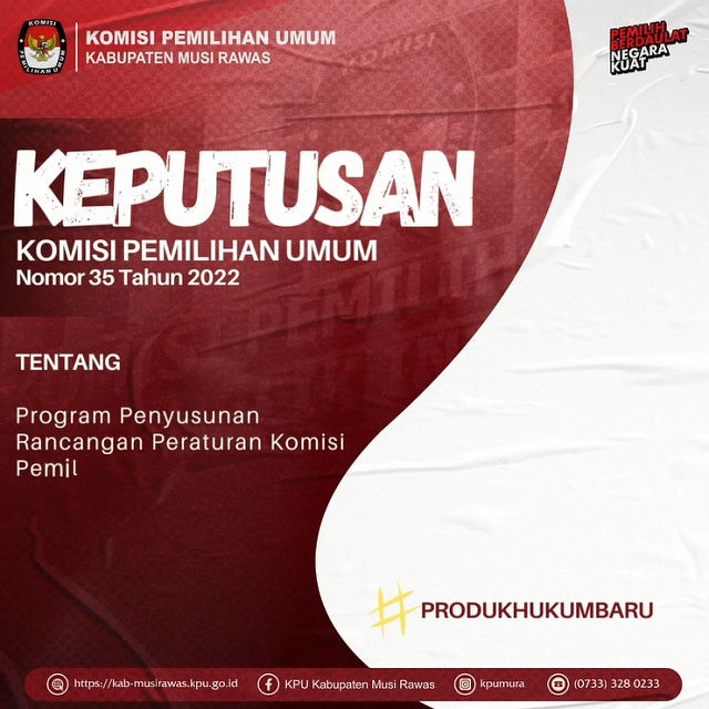 Keputusan Komisi Pemilihan Umum Nomor 35 Tahun 2022 tentang Program Penyusunan Rancangan Peraturan Komisi Pemilihan Umum.
