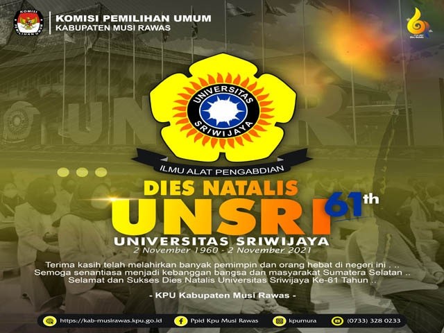 Selamat dan sukses Dies Natalis Universitas Sriwijaya ke-61 Tahun.