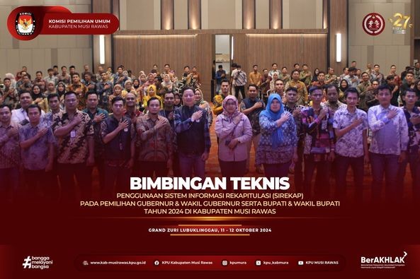 #TemanPemilih, KPU Kabupaten Musi Rawas Melaksanakan Bimbingan Teknis Pengunaan Aplikasi Sistem Informasi Rekapitulasi (SIREKAP) Untuk Pemilihan Gubernur & Wakil Gubernur serta Bupati & Wakil Bupati Tahun 2024 di Grand Zuri Lubuklinggau (11-12/10/2024) ..