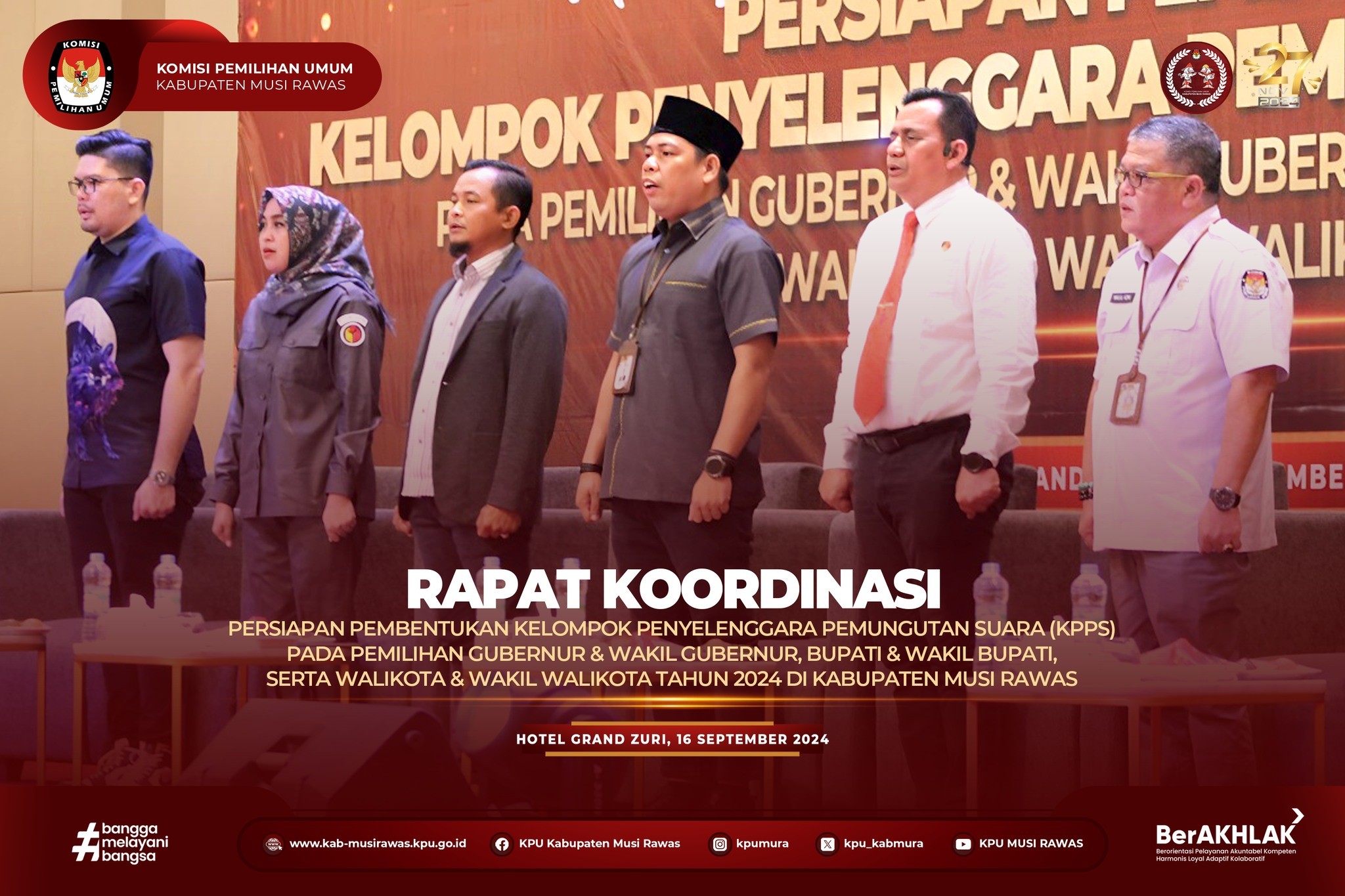 #TemanPemilih, KPU Kabupaten Musi Rawas Melaksanakan Kegiatan Rapat Koordinasi Persiapan Pembentukan Kelompok Penyelenggara Pemungutan Suara (KPPS) Pada Pemilihan Gubernur & Wakil Gubernur, Bupati & Wakil Bupati, serta Walikota & Wakil Walikota Tahun 2024 yang berlangsung di Hotel Grand Zuri Lubuklinggau (16/9/2024) ..